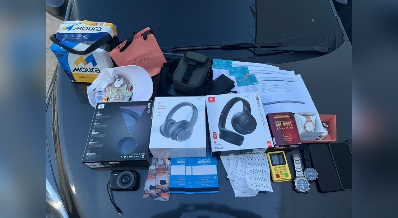 Durante as investigações, a polícia conseguiu apreender diversos itens relacionados às atividades criminosas, incluindo um celular, cartões bancários, dinheiro em espécie e uma máquina de cartão de crédito. Além disso, no veículo de um dos suspeitos, foram encontrados vários objetos de valor, como celulares, relógios, joias, outras máquinas de cartão e notas fiscais que pertenciam a diferentes estabelecimentos.