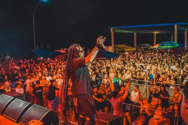 A noite começou com a apresentação da banda Sr. Bamba, que trouxe ao palco uma mistura de rock, reggae, hip-hop e samba. As canções, que falam sobre positividade e a vida caiçara, como “Conexão Litoral” e “Diz Nete”, logo conquistaram os espectadores, animando o público antes da atração principal.