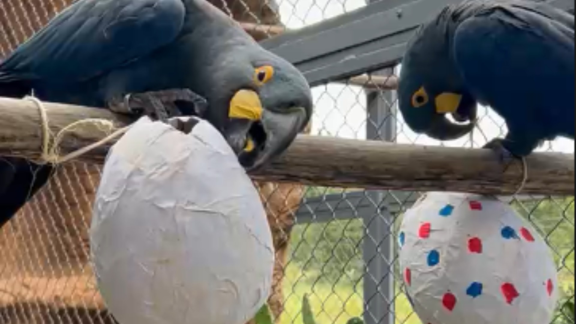 Os ovos, feitos de materiais não tóxicos como papelão e cola à base de farinha, estavam recheados de itens adaptados às necessidades nutricionais de cada espécie. Enquanto os tamanduás-bandeira encontraram ração específica, os primatas se deliciaram com tenébrios, as larvas que fazem parte de sua dieta, e as araras-azuis-de-Lear puderam saborear o licuri, um dos seus alimentos preferidos.